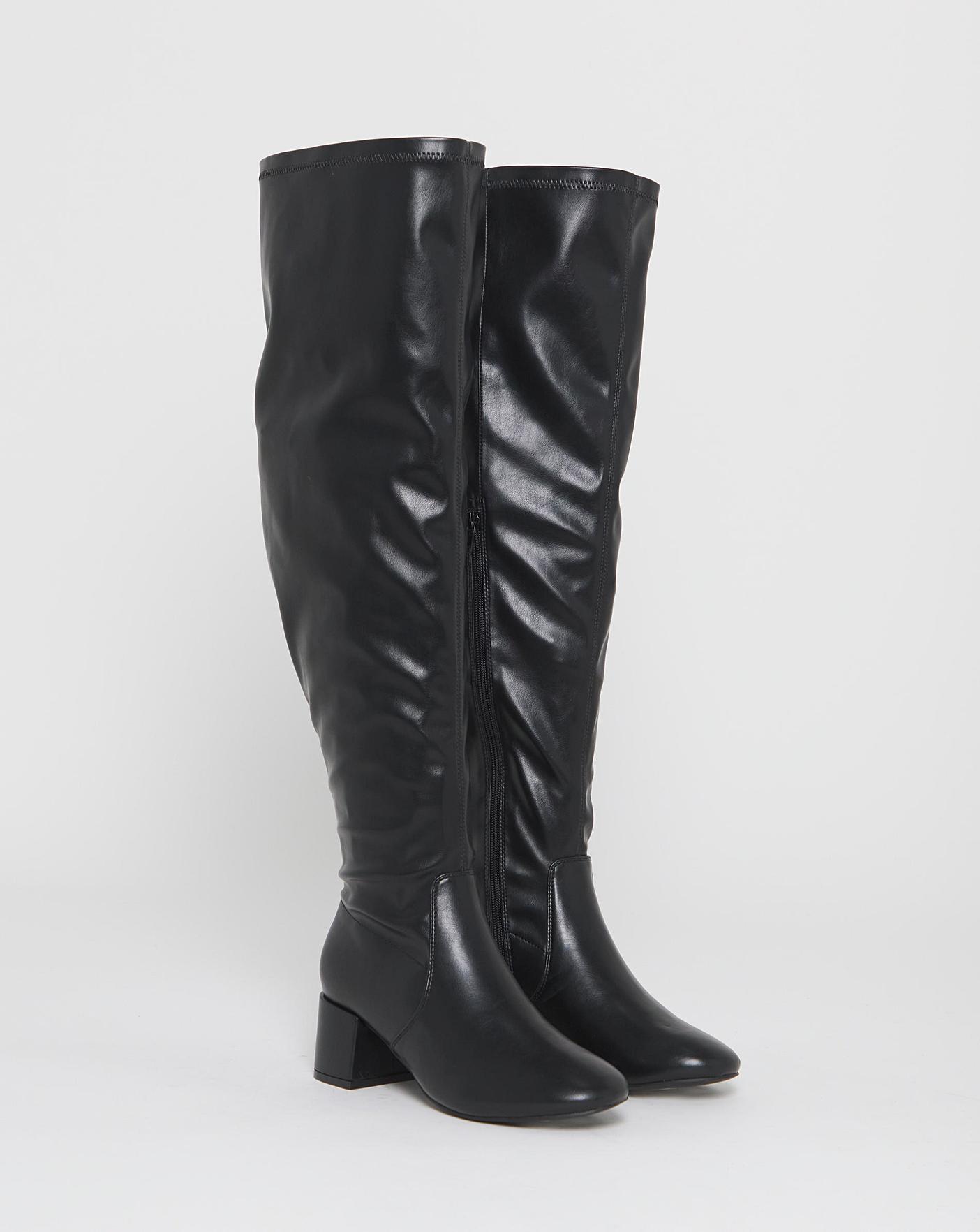 Our boots are your perfect match. Over the knee sock boot Stretch upper material to fit snug to you Rounded toe Smart block heel Inside leg zip for ease Cushioned sock for day to night comfort