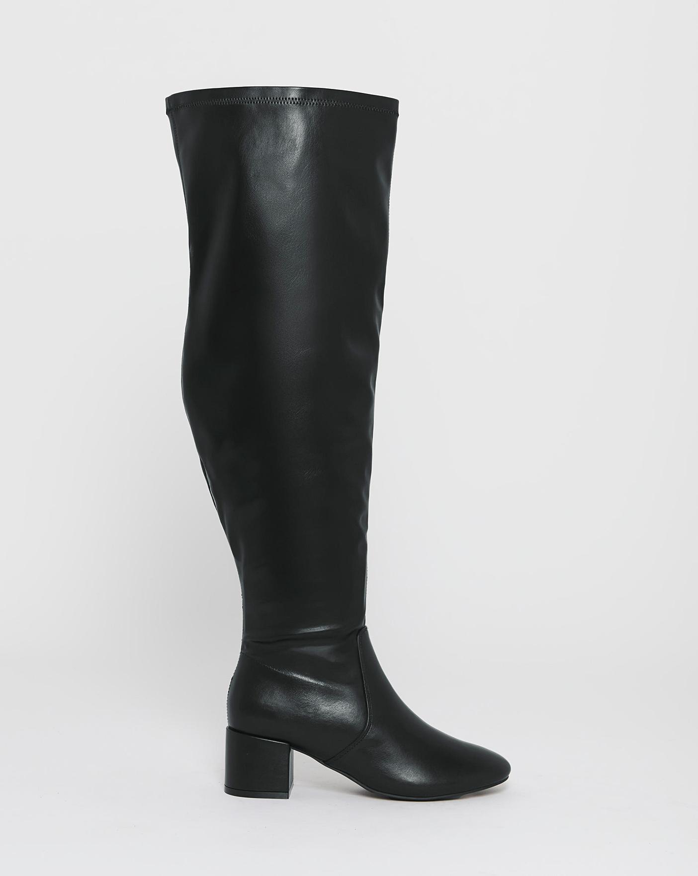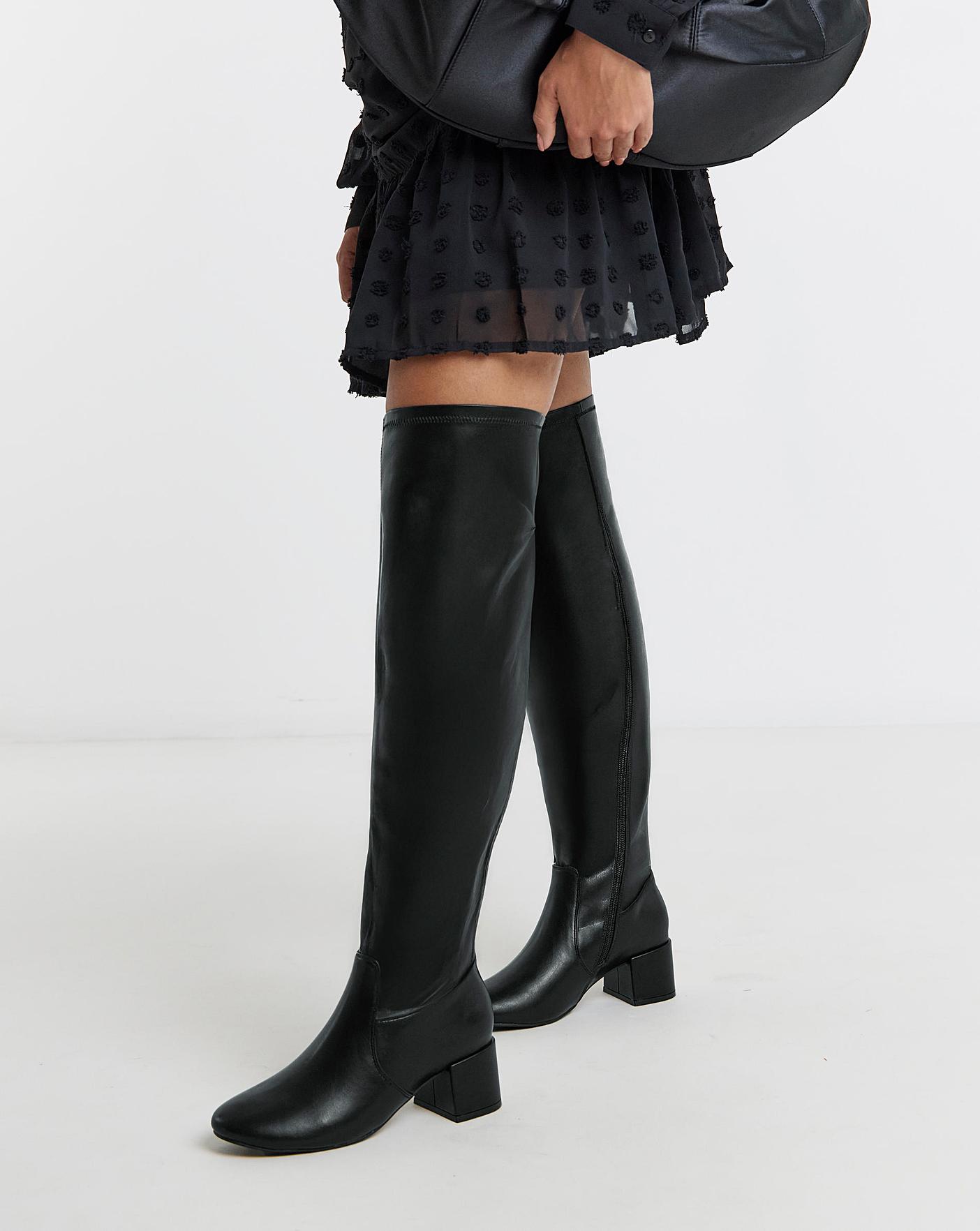 Our boots are your perfect match. Over the knee sock boot Stretch upper material to fit snug to you Rounded toe Smart block heel Inside leg zip for ease Cushioned sock for day to night comfort