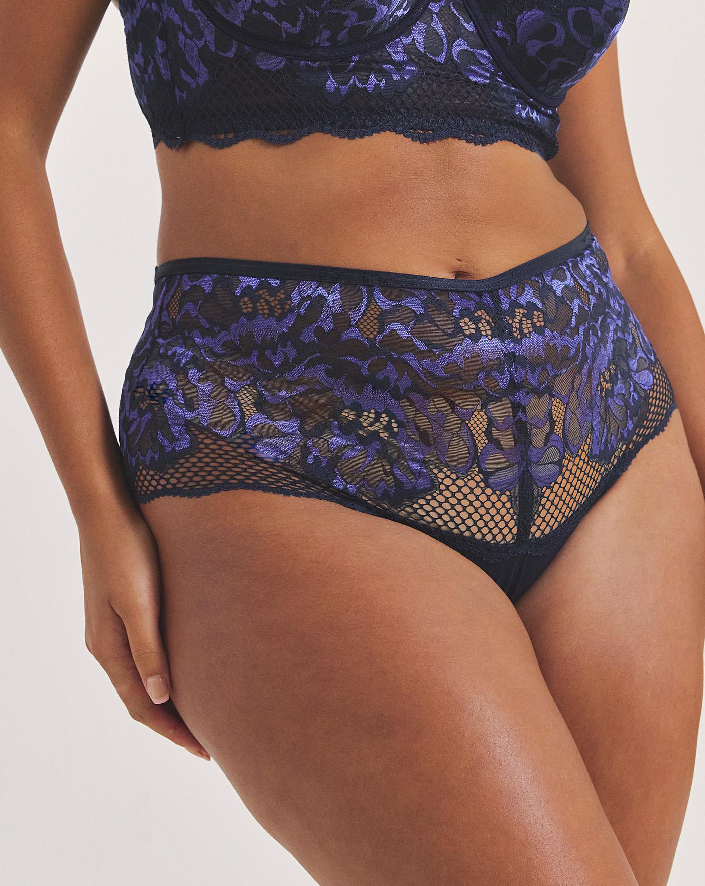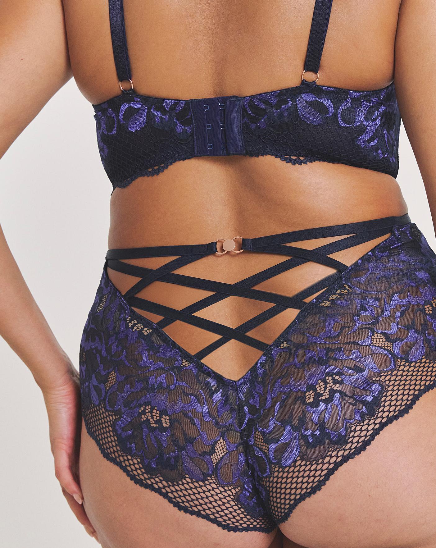 This Amore Brazilian Brief features beautiful signature Amore lace with statement details to freshen up your lingerie collection. Deep Brazilian fit. Stunning Amore lace. Back strapping details. Scalloped edge to the legs. Pair with the matching Amore Padded Balcony Bra to complete the set.