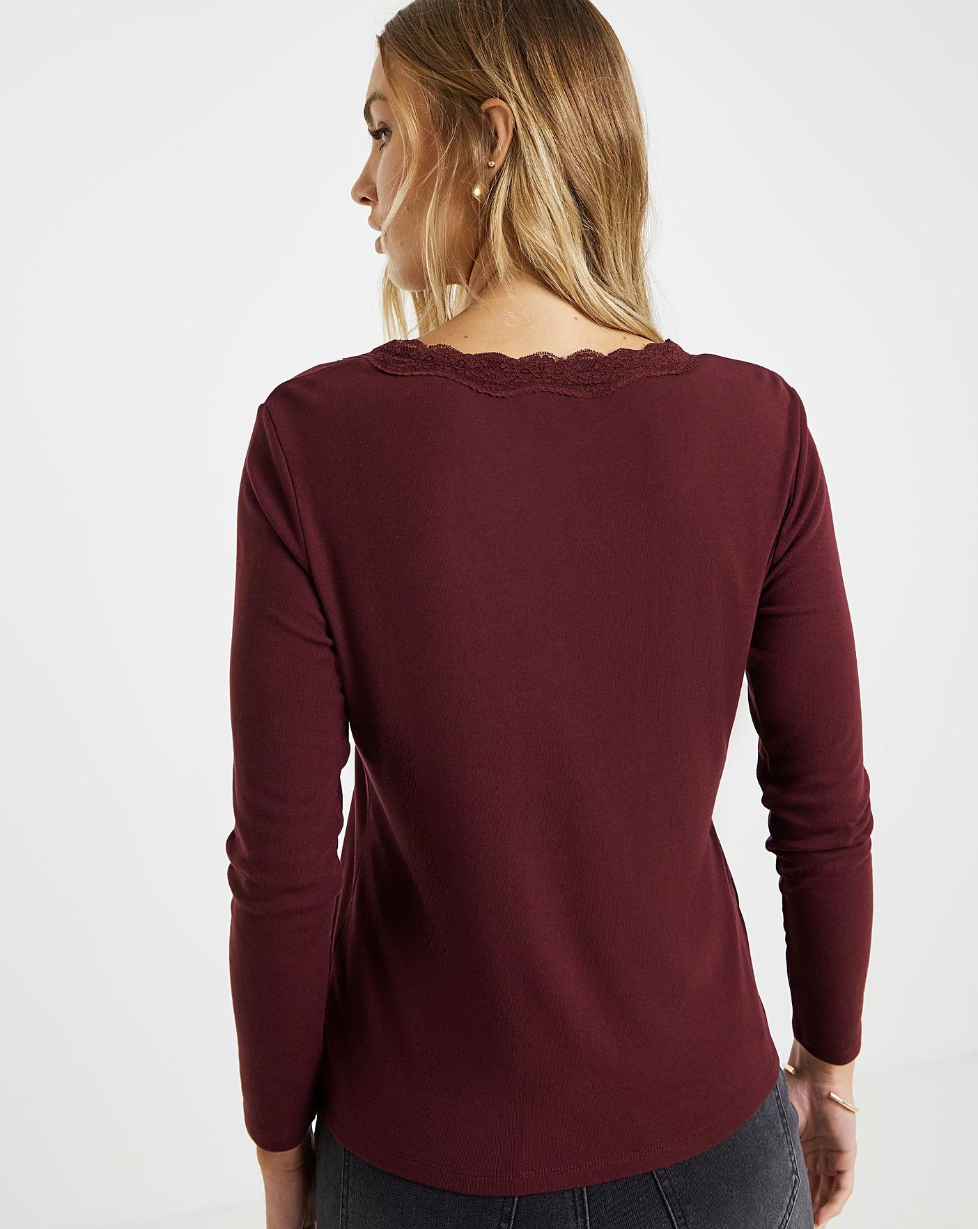 Our cosy long sleeve lace V neck top is the perfect transitional top for your wardrobe. Featuring a V neckline, lace trim, slim fit, soft and comfy jersey and long sleeves. Pair back with your favourite jeans for the perfect elevated look.
