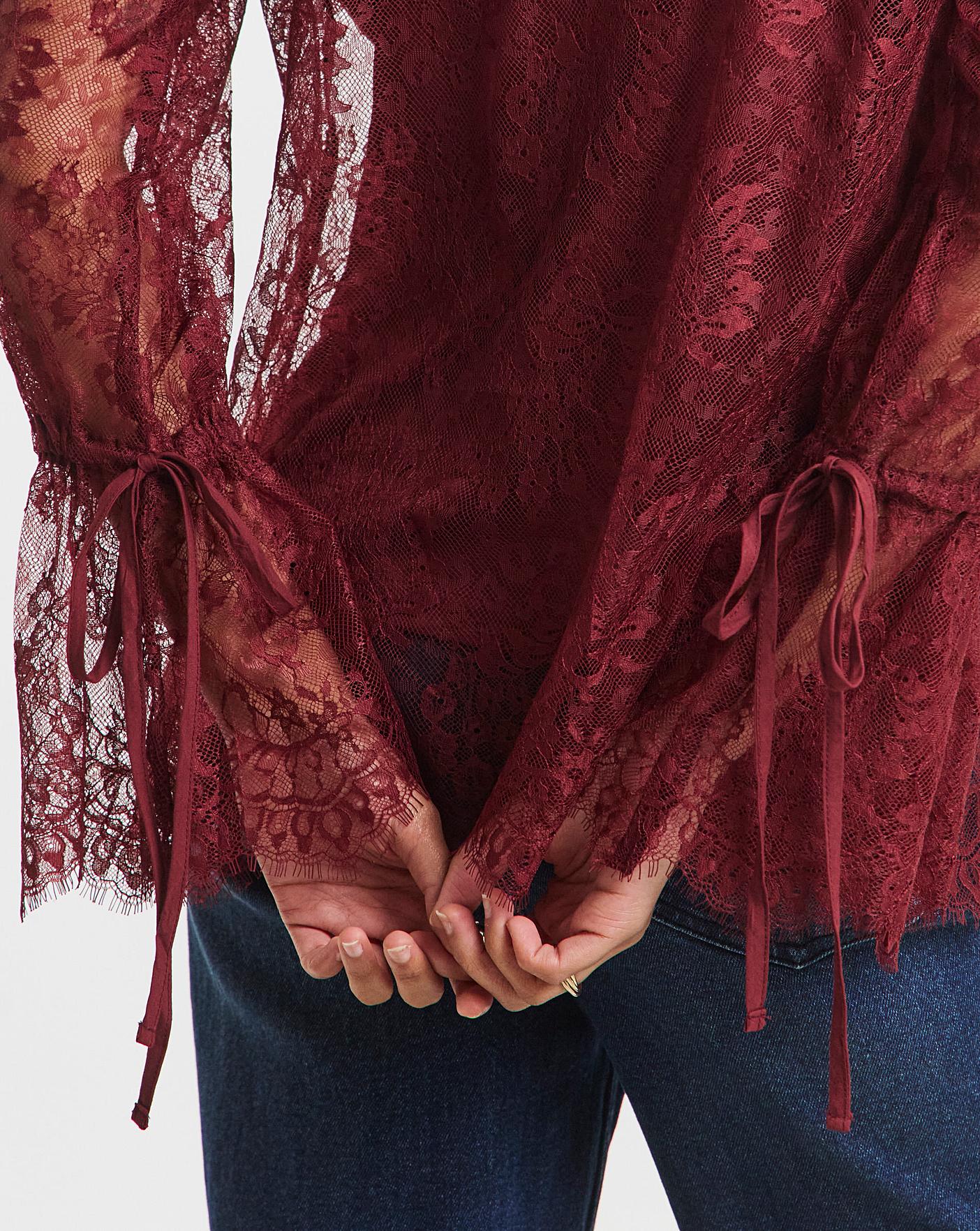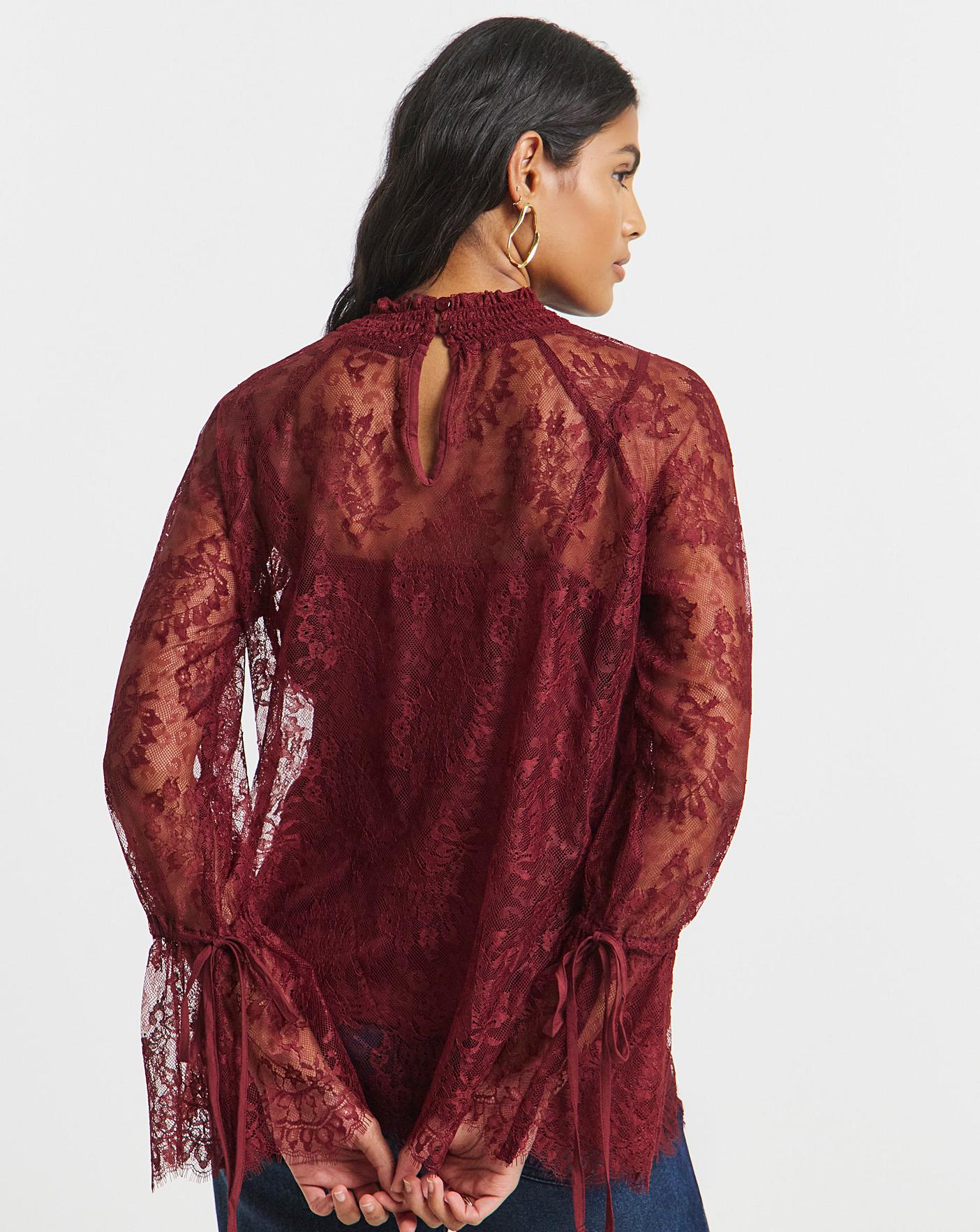 A great addition to your wardrobe this season. Shop this stylish blouse featuring: Lace fabric, Flattering fit, High neck, Tie details. Simply pair with jeans for an effortless going out look!