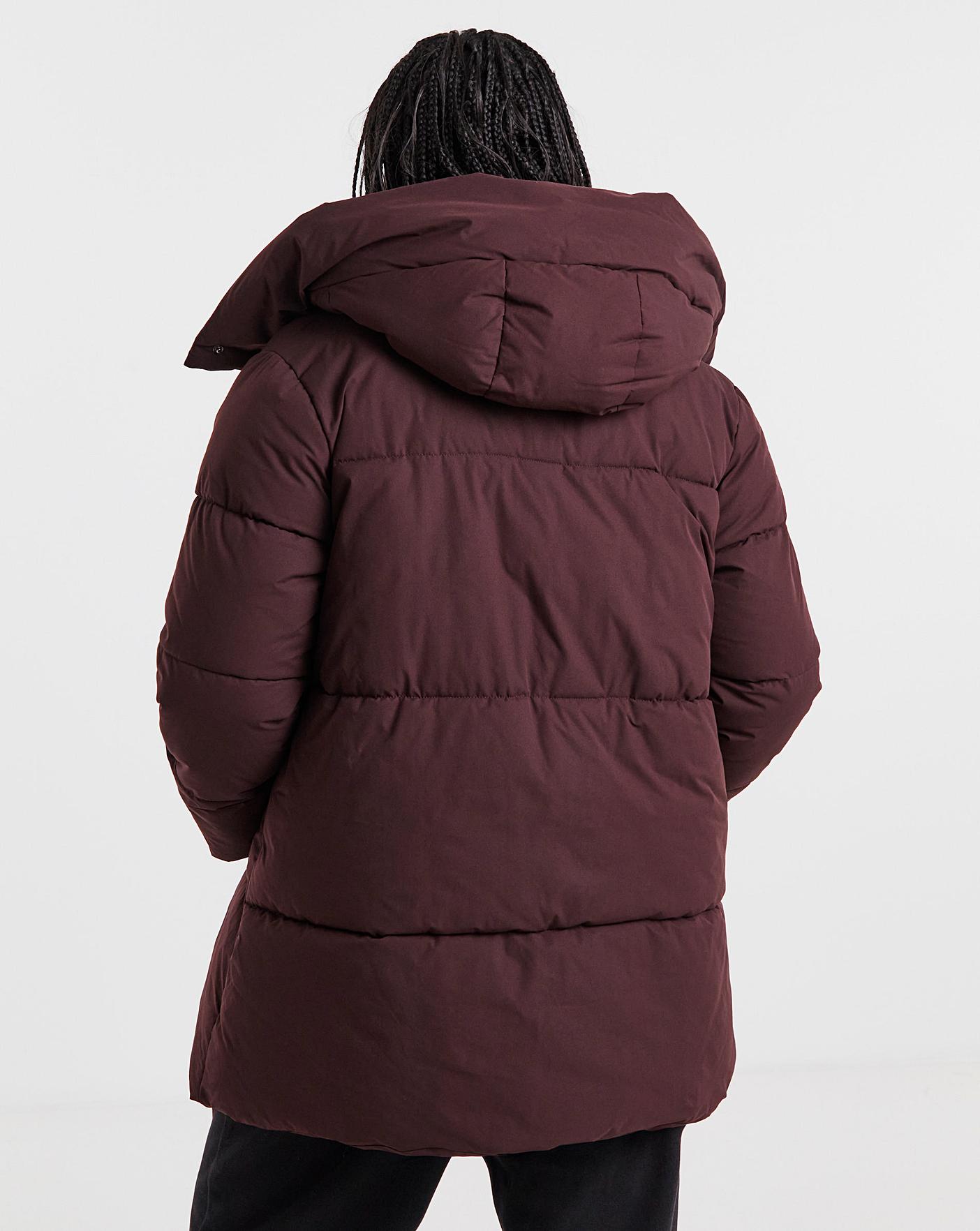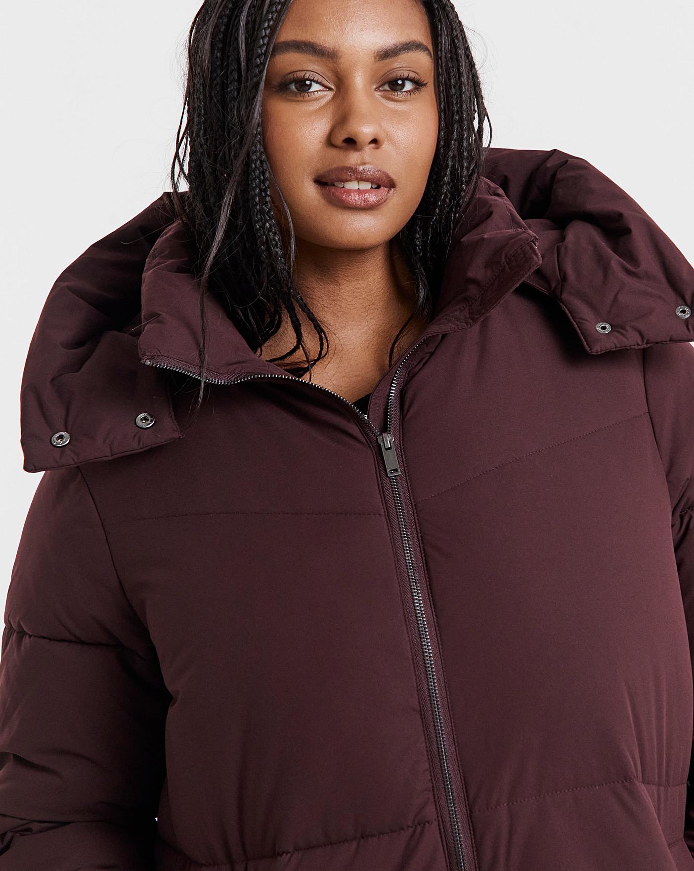 Our new Burgundy Longline Padded Coat is the ultimate wardrbe upgrade- guaranteed to keep you snug and stylish all season! It features front popper and zip fastening, weighted padding for extra warmth, a functional hood, and the latest burgundy colour. Throw over any daytime outfit to complete your look.