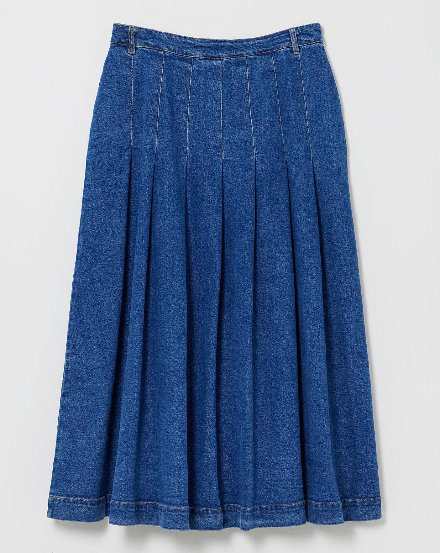 Shop this seasons hottest trend with our midaxi denim kilt. Featuring a midaxi length and pleated a-line design. Style with your favourite top or jumper for a simple but stunning look.