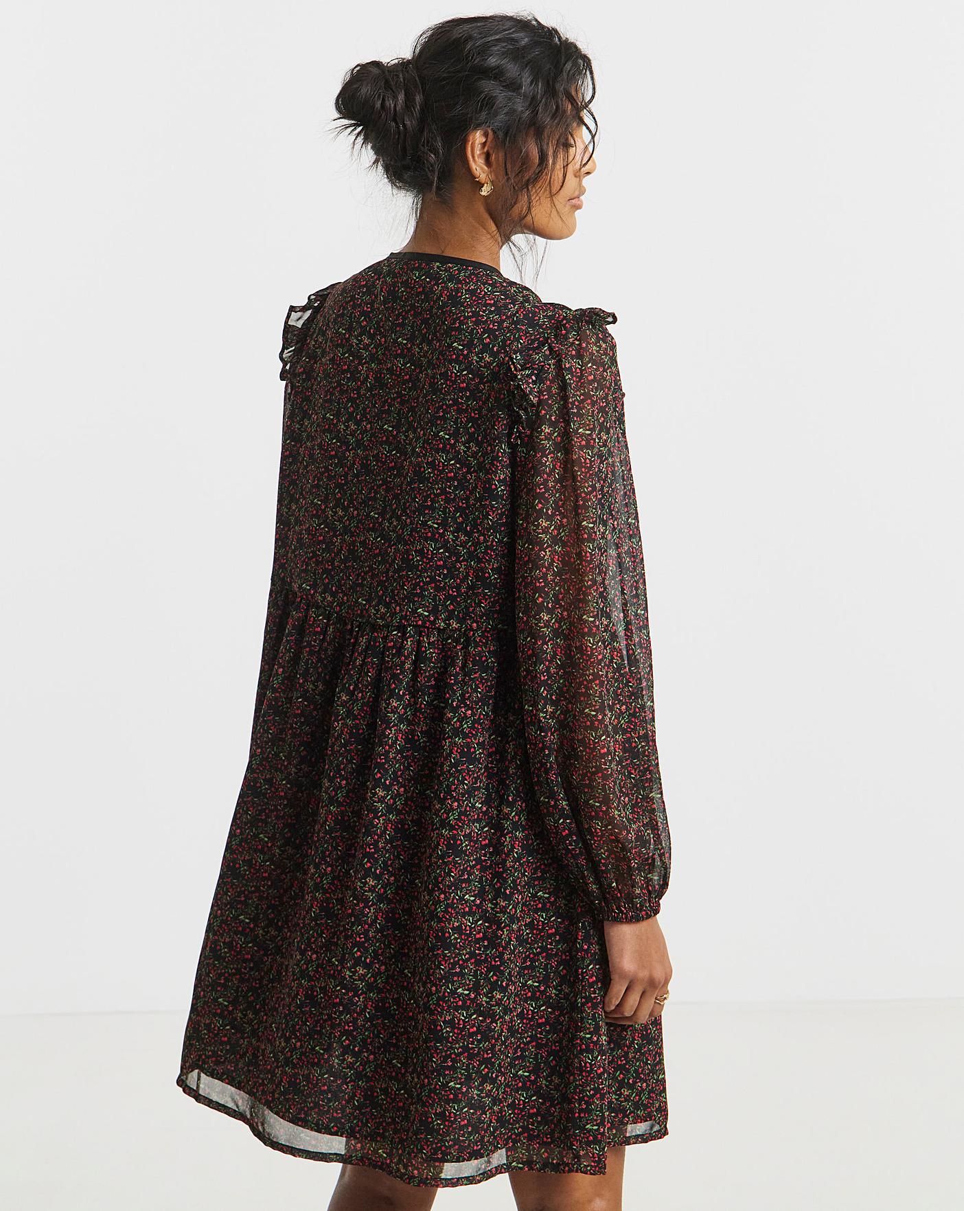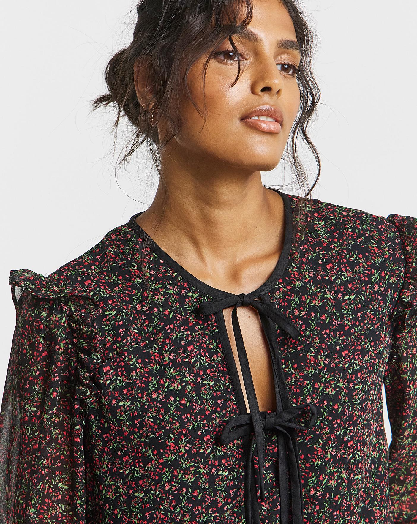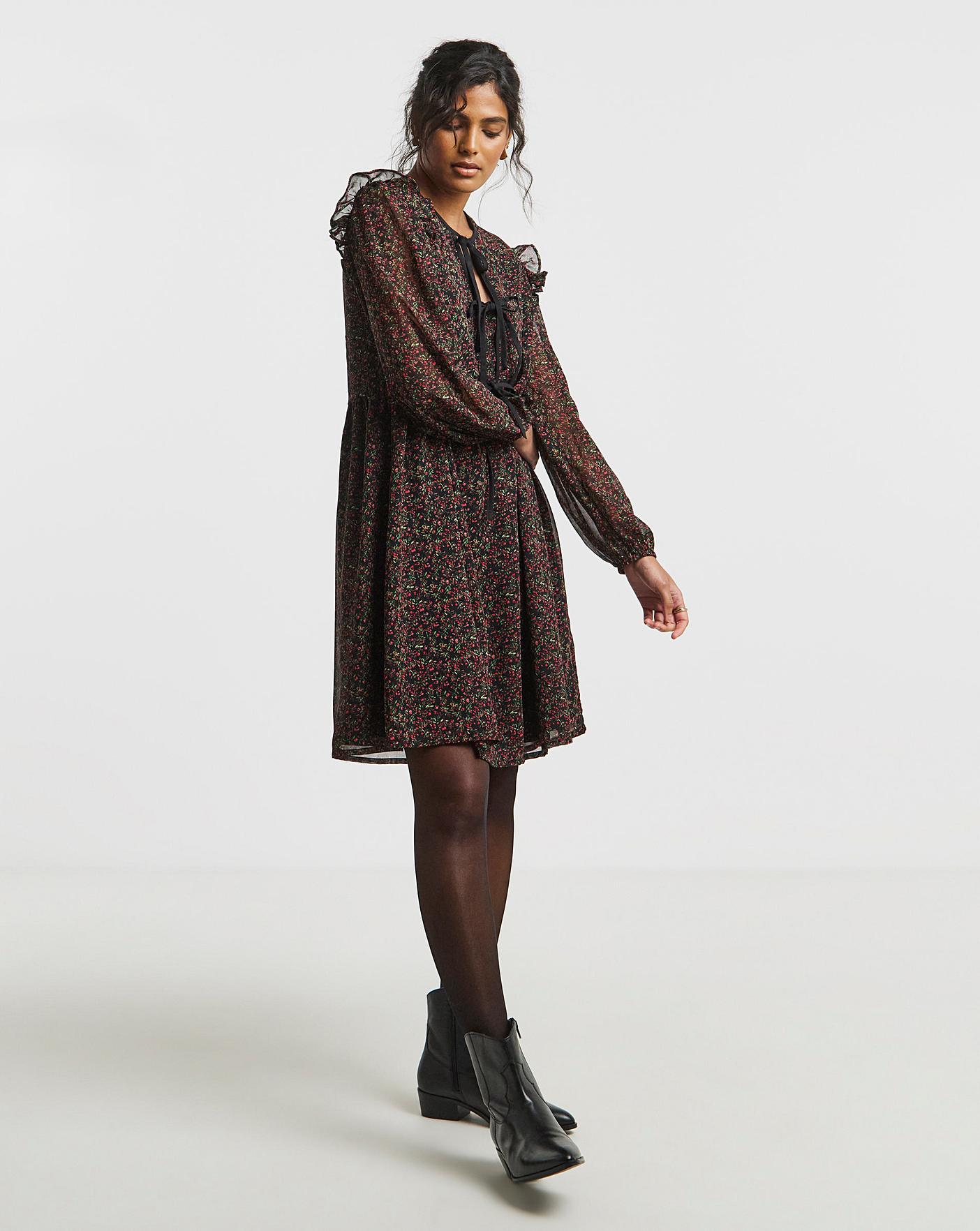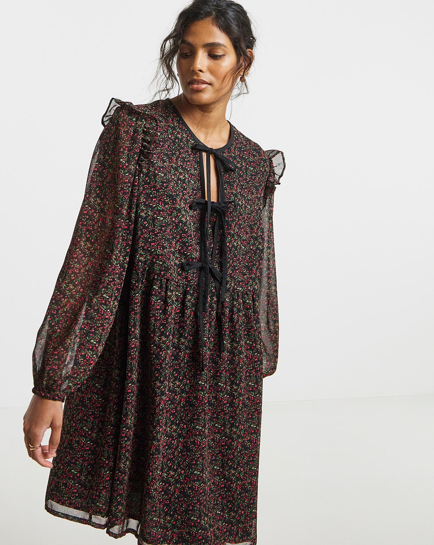 The Ditsy Bow Detai Skater Dress comes in two lovely prints and is perfect for a day tme look. Tie front detail. Skater style dress. Frill detailing. Style with boots for a transiitonal look.