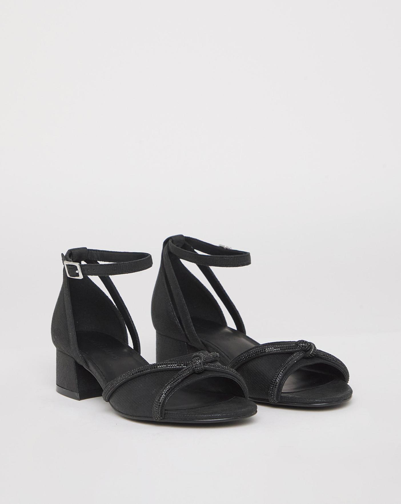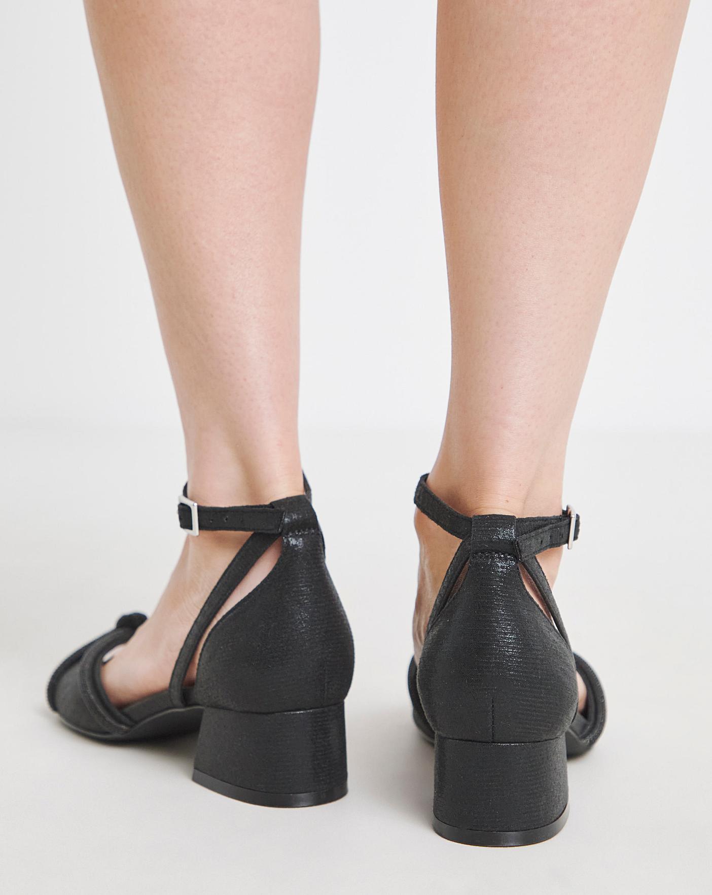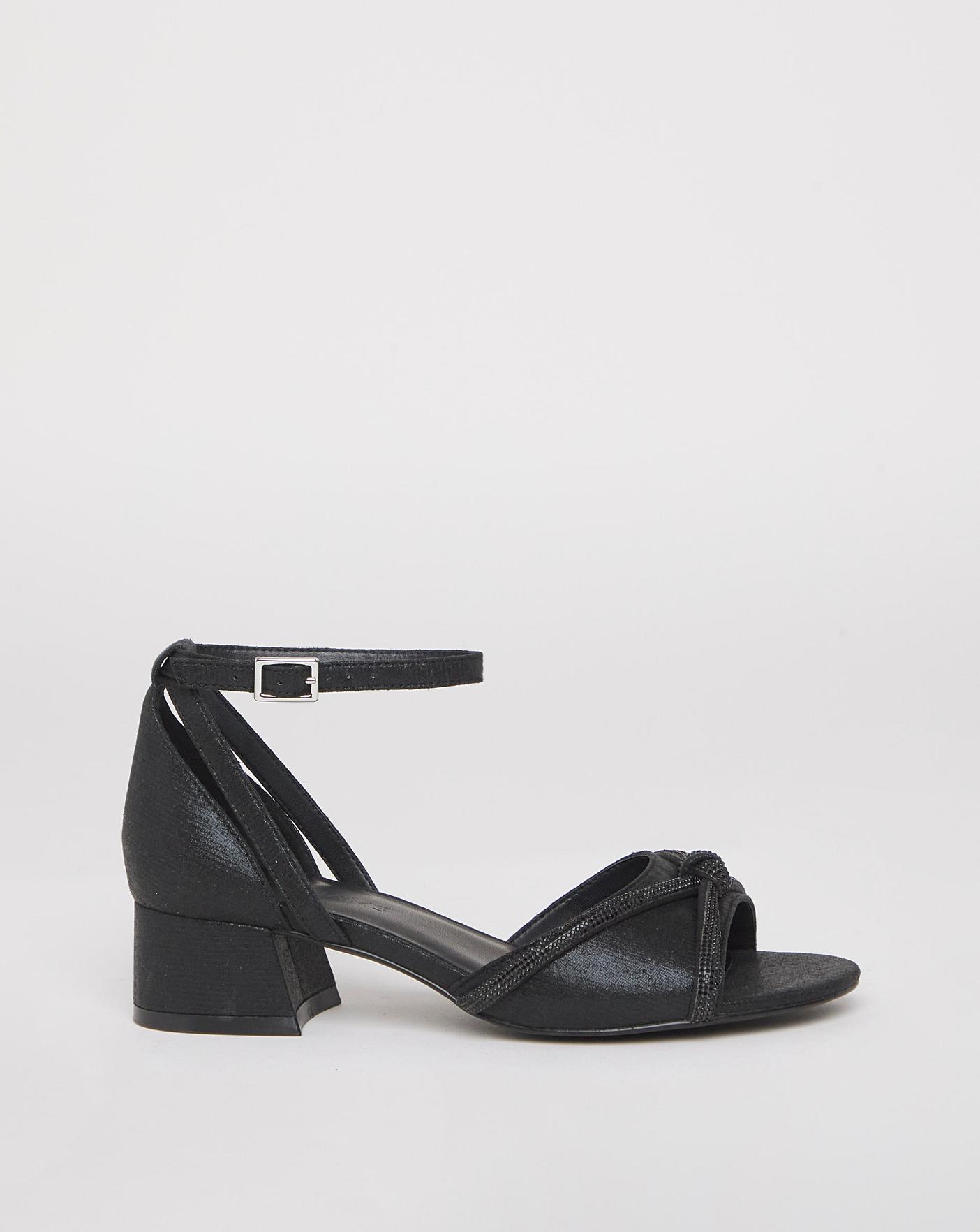 Add a bit of shimmer to your evening with these diamante detail heels. Featuring a low block heel so you can last all night on the dancefloor, adjustable ankle strap and shimmered fabric to give that extra sparkle.