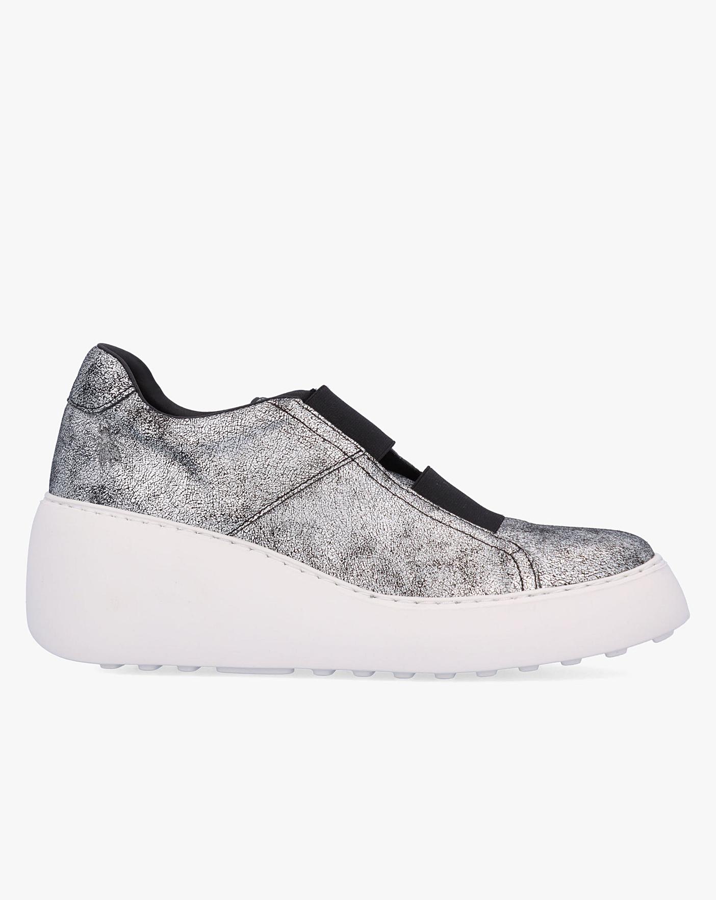 • Fly London Dito II Silver Leather Wedge Trainers