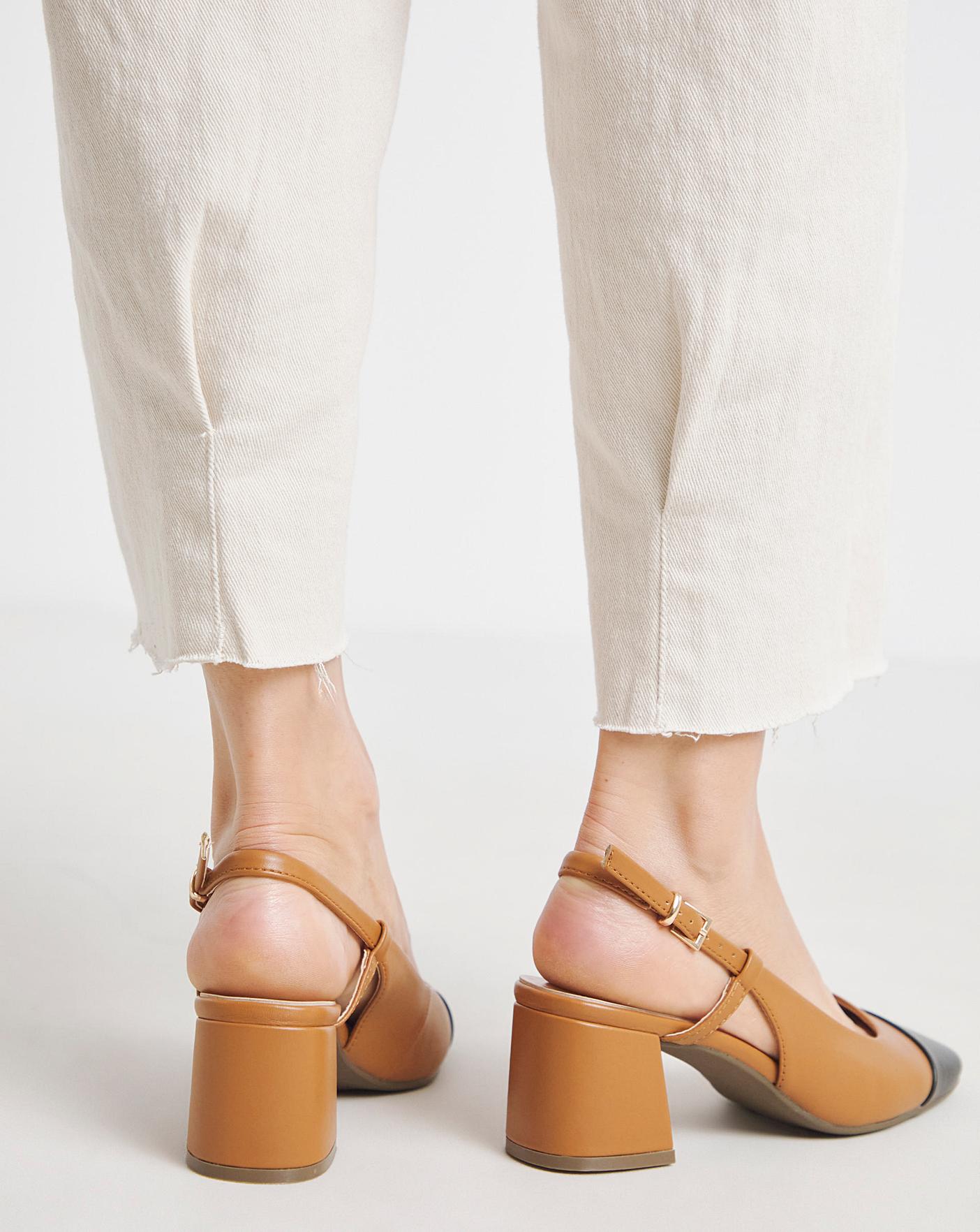 Looking for a new pair of office shoes, or just some smart casual heels then these are for you. Featuring an adjustable slingback with buckle, sturdy block heel, contrast toe cap and extra padding in the sock for maximum comfort.