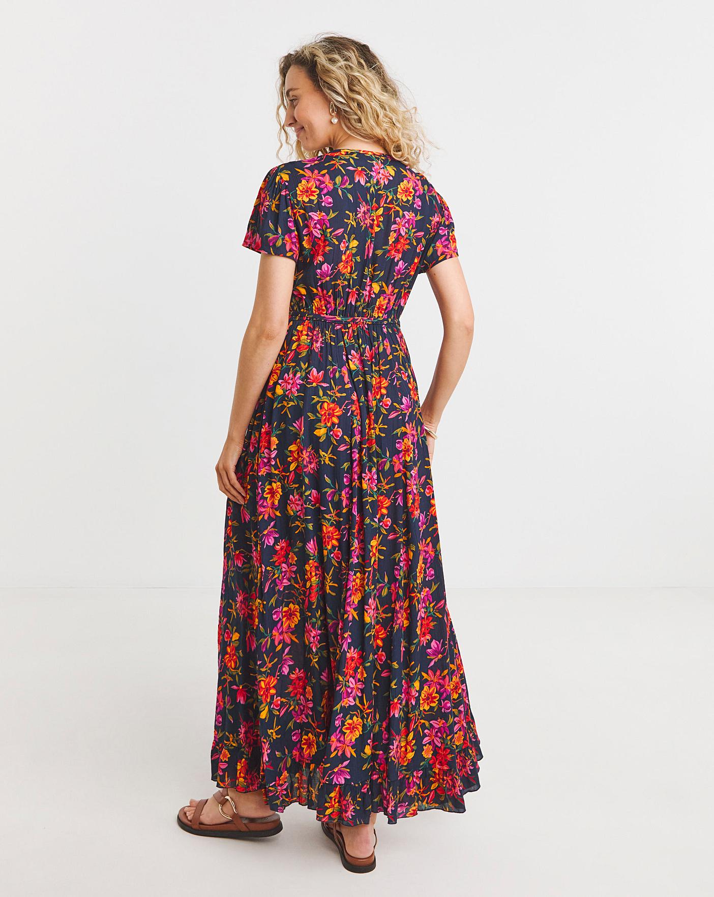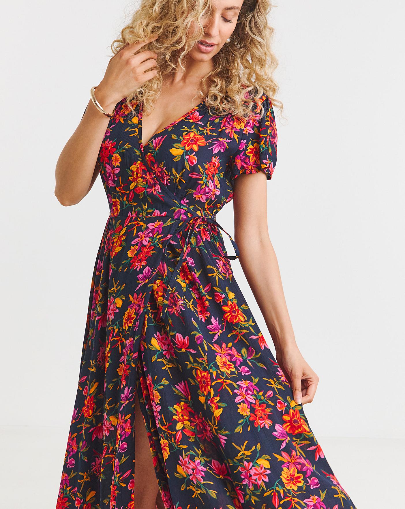 Our Summer Breeze Dress is the perfect piece to pack for your next summer holiday! Featuring a fabulous tropical floral print, this fixed wrap top design has a side tie with a tiered skirt for a fit that hugs in all the right places. And notice the short puffed sleeves with shirred cuffs? Together these elemnts create a style that's cool, comfortable and classy.