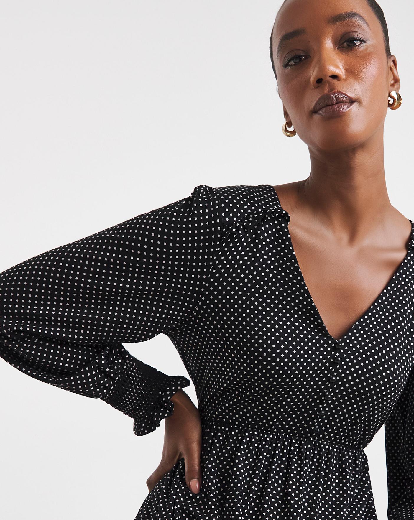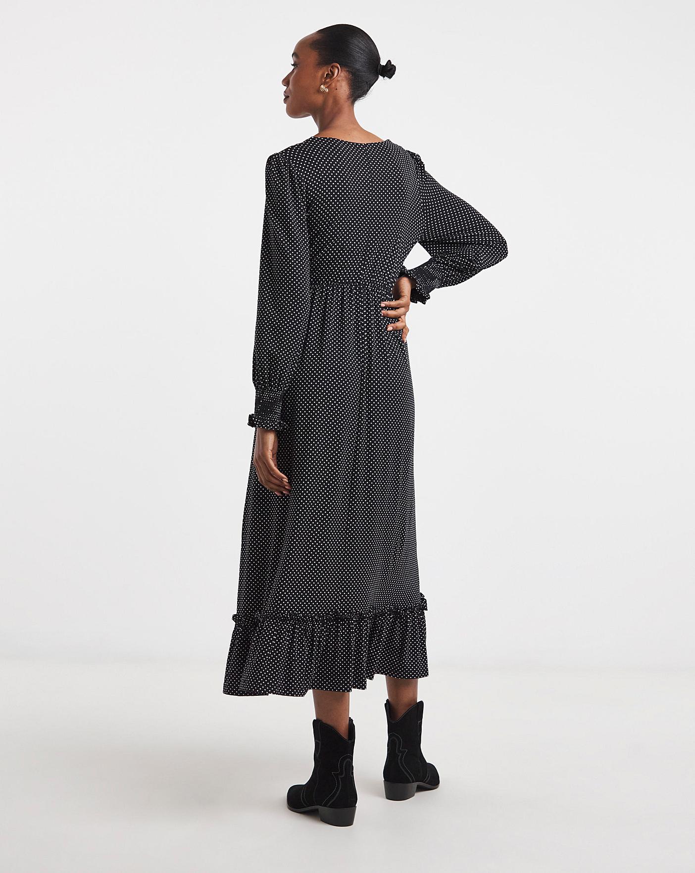This elegant Joe Browns dress combines timeless sophistication with a playful twist. Including a flattering V-neckline, midaxi silhouette, polka dots, gives it a chic yet fun vibe, long sleeves add a touch of versatility and makes it perfect for transitioning between seasons. Pair it with ankle boots, for an effortlessly styled look that works for both casual outings and dressier occasions