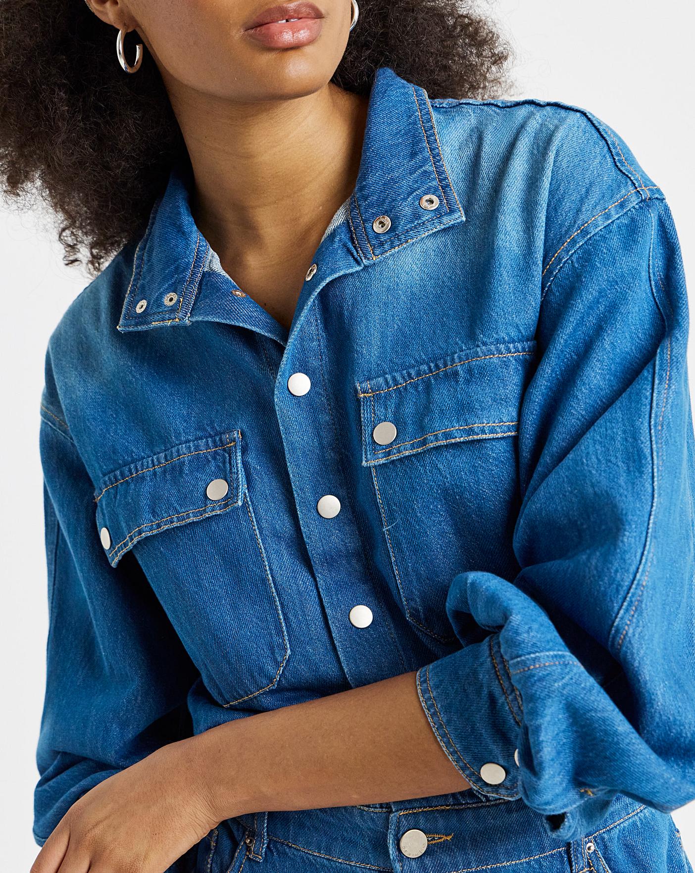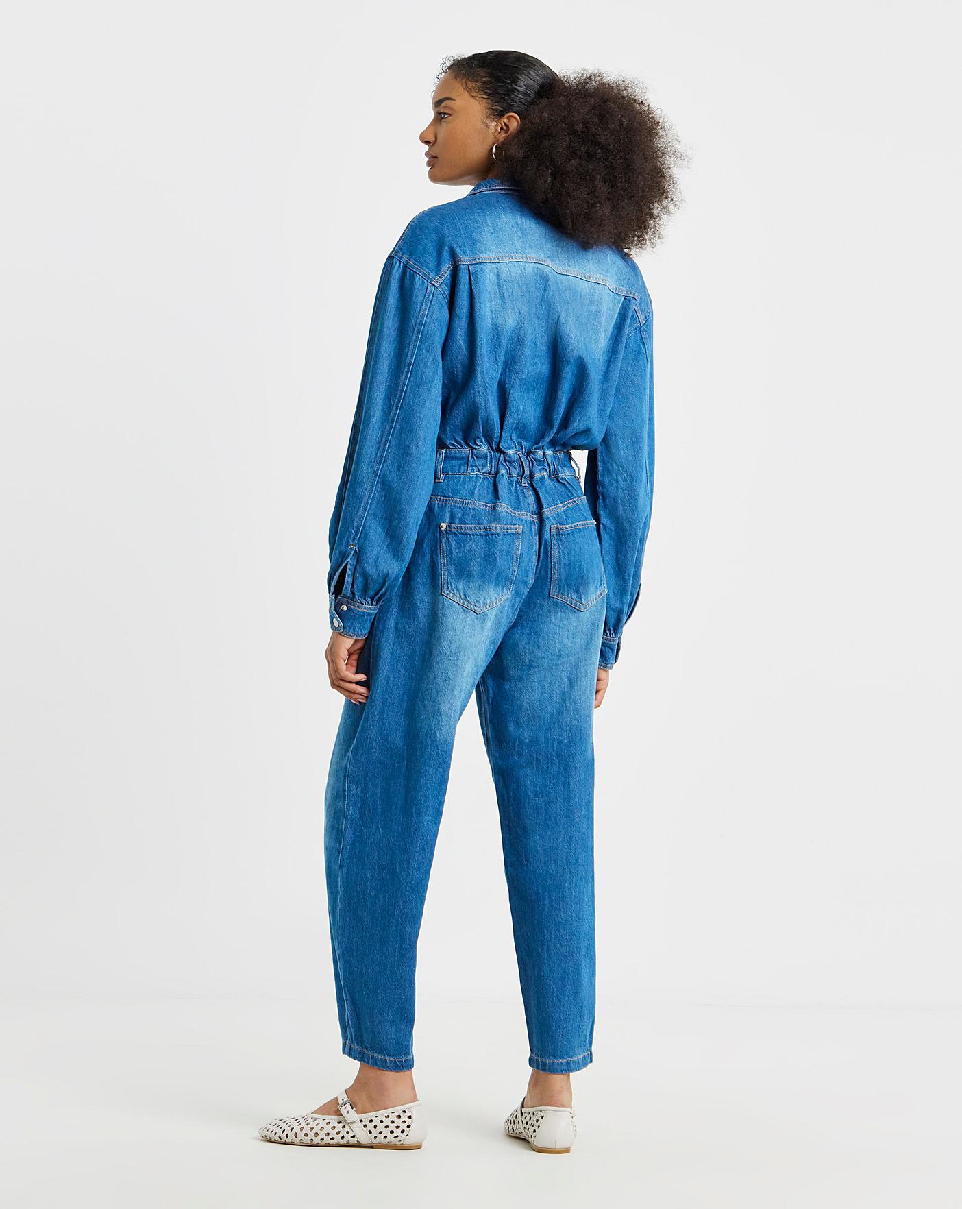 Our new Authentic Look Drape Denim Jumpsuit is a must- have piece this season! It features a cuffed, ballooned sleeve, front button fastening, front pockets, and belt loops. Add your favourite belt to level up this classic look.