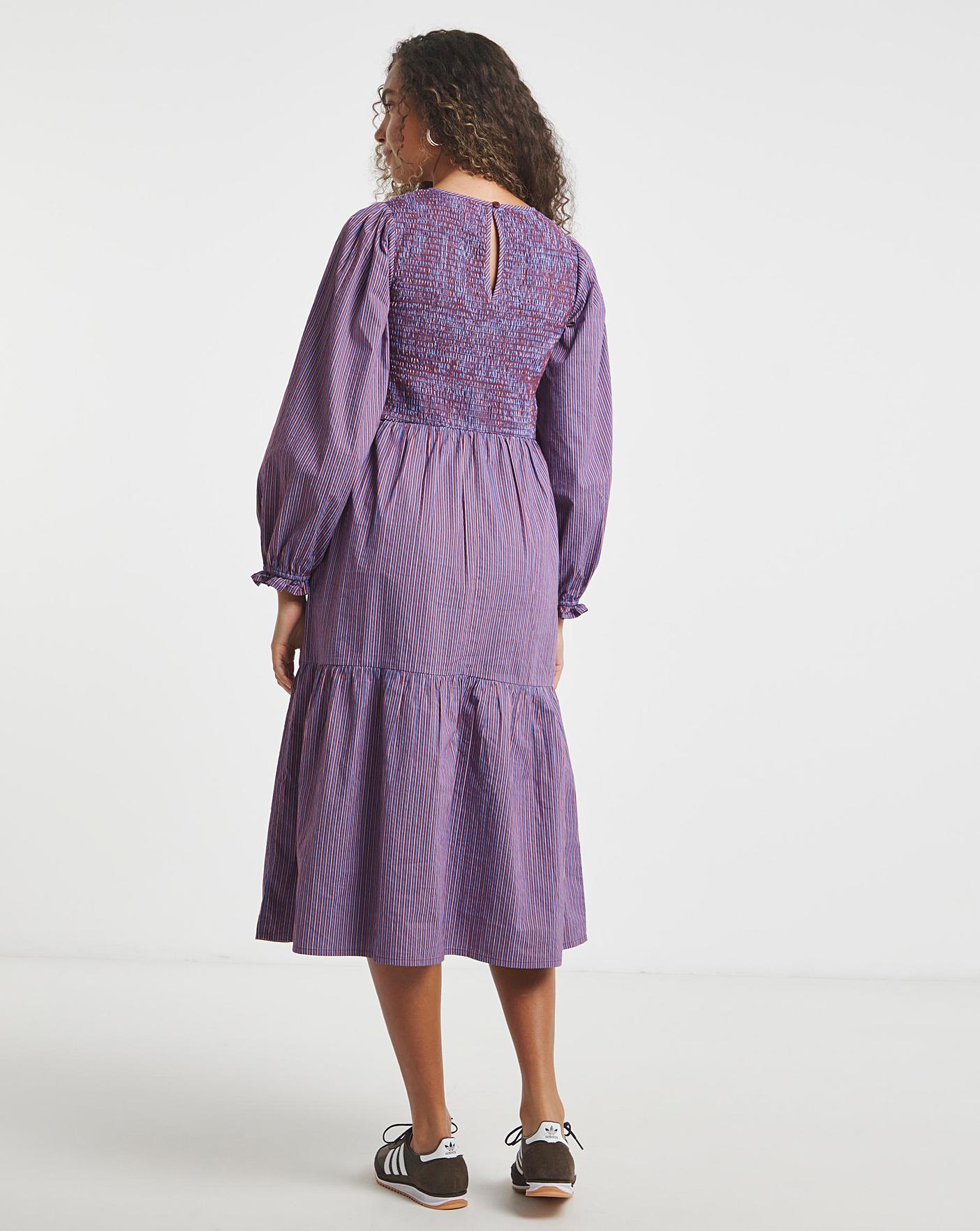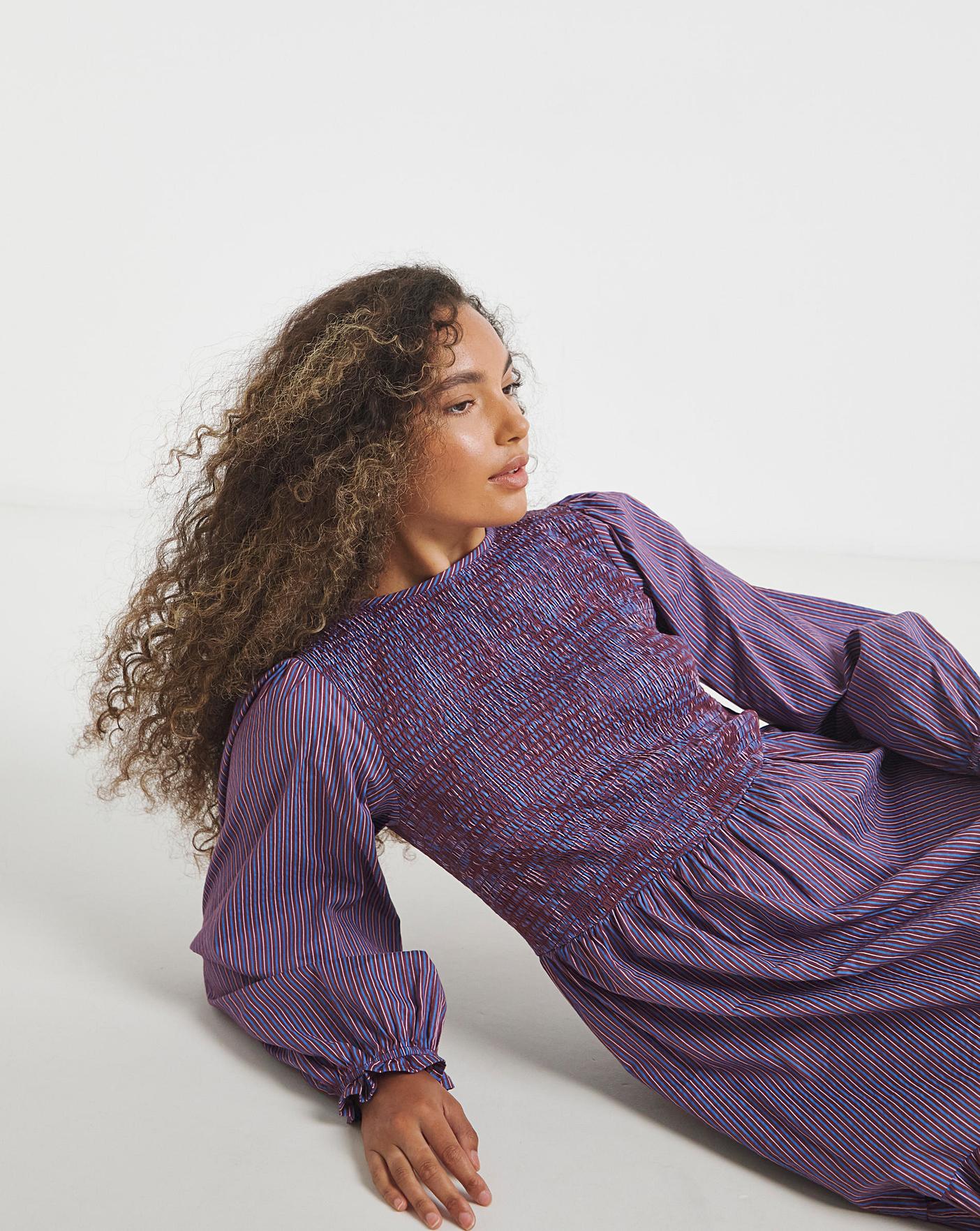 This Neon Rose striped mid- axi dress is a must- have style this autumn. A flattering, shirred bodice with a flowy skirt makes this dress an effortless stylish staple piece.