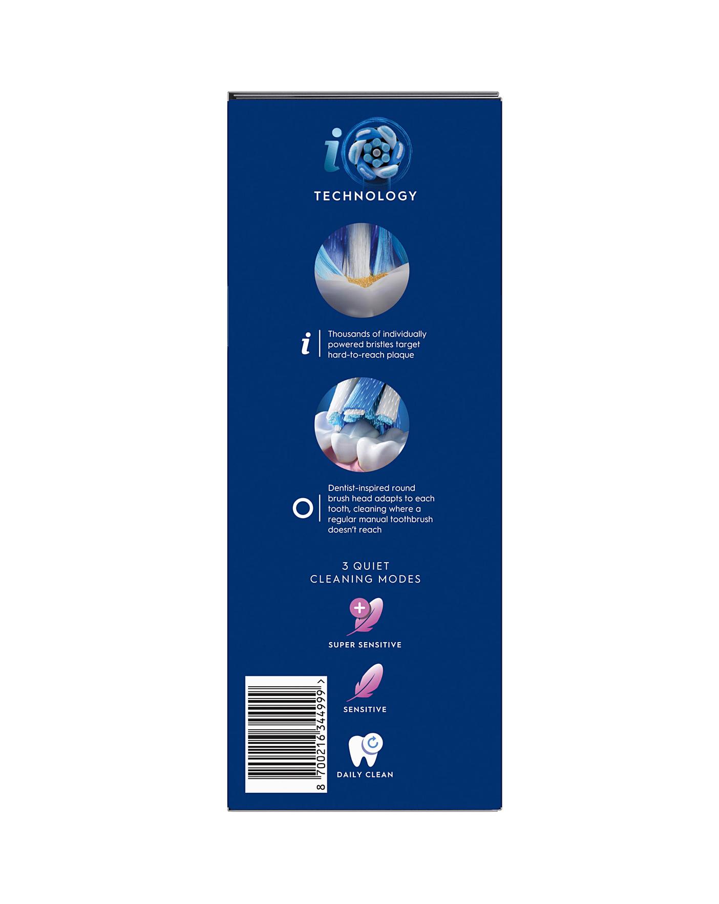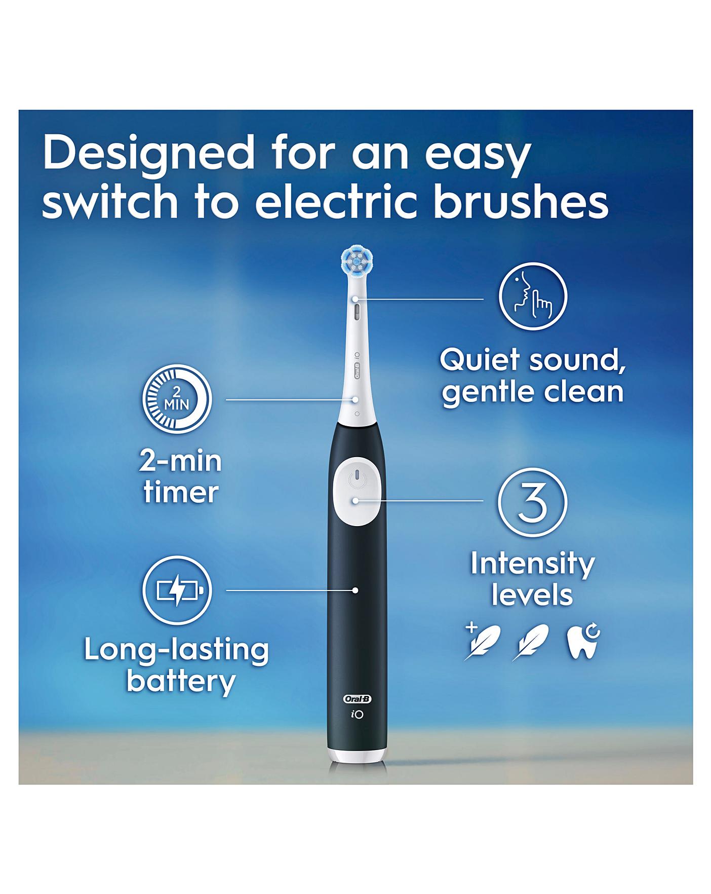 The iO2 electric toothbrush combines gentle micro-vibrations with a unique dentist-inspired round brush head for a purifying feel of a professional clean. Replace your Oral-B iO toothbrush head every 3 months for the best results.