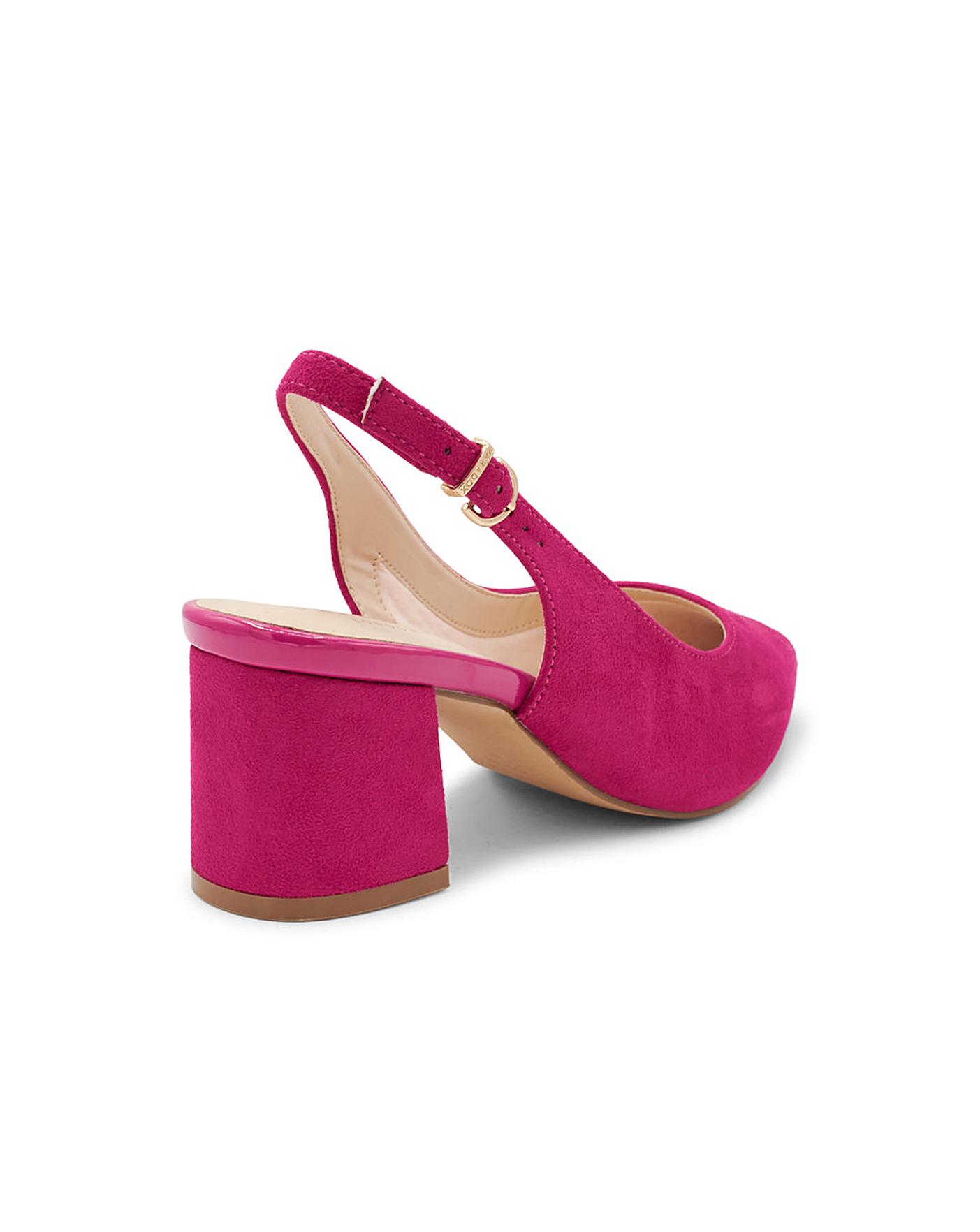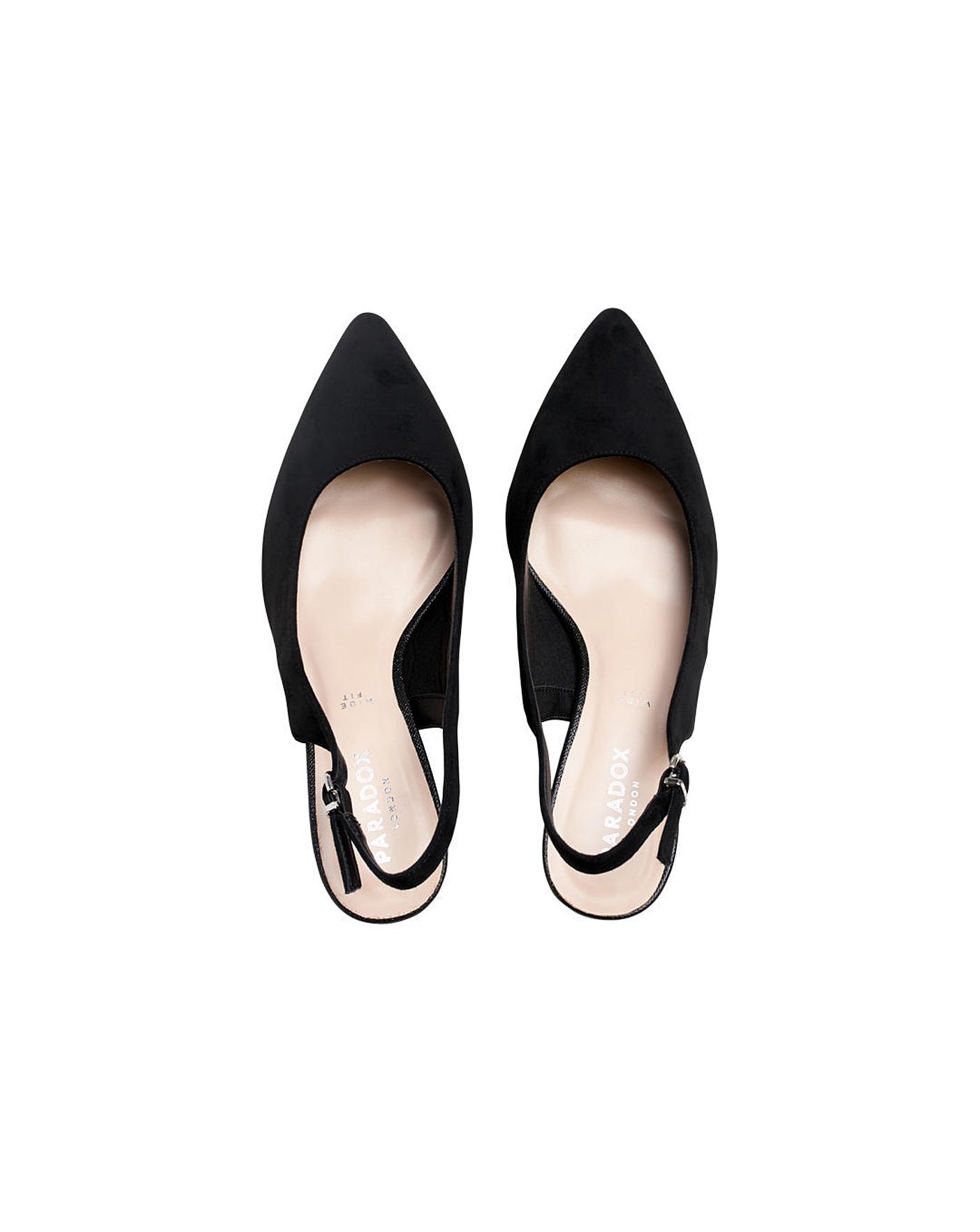 • The Wide fit Flynn sling backs by Paradox London sit on a sturdy low block heel, they are designed with a closed toe that has smart-casual covered.