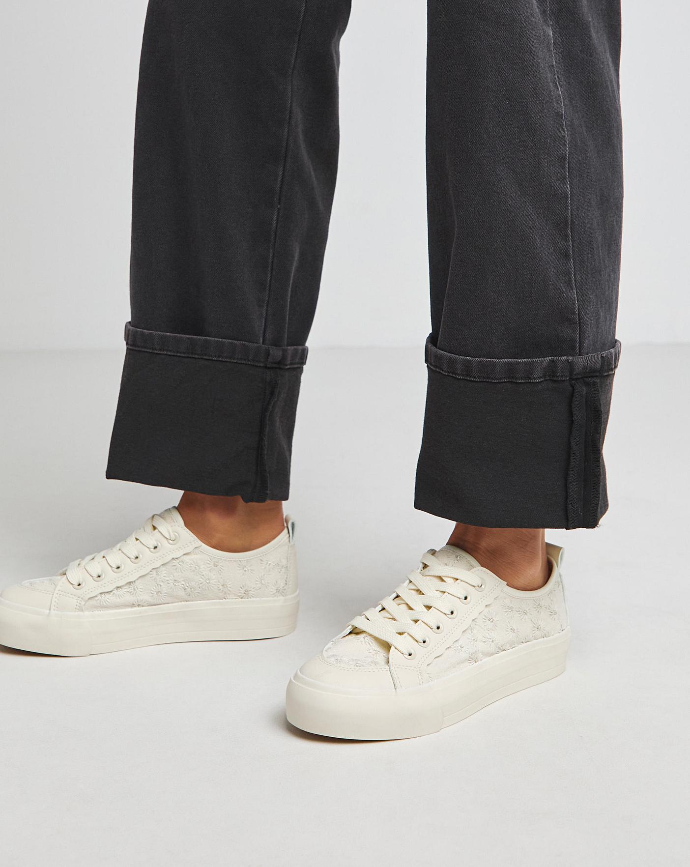 These trainers are perfect to add some interest to your casual wardrobe. Detailed flower fabric, lace up front & chunky flat sole.