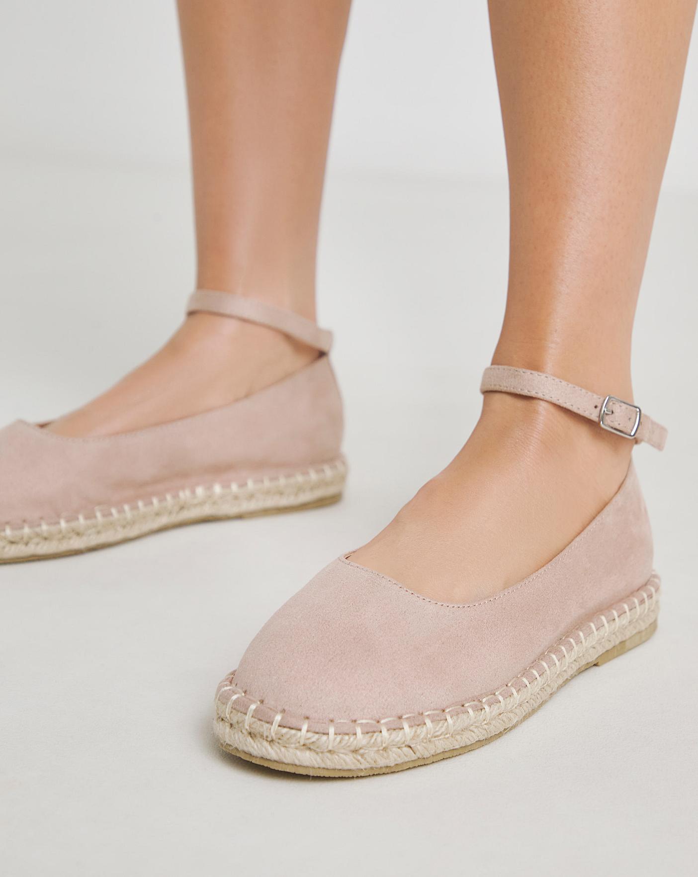 Elevate your everyday with these espadrille ballet flats. Soft ballerina silhouette, adjustable ankle strap and flat espadrille sole, perfect for adding a touch of elegance to any casual look.