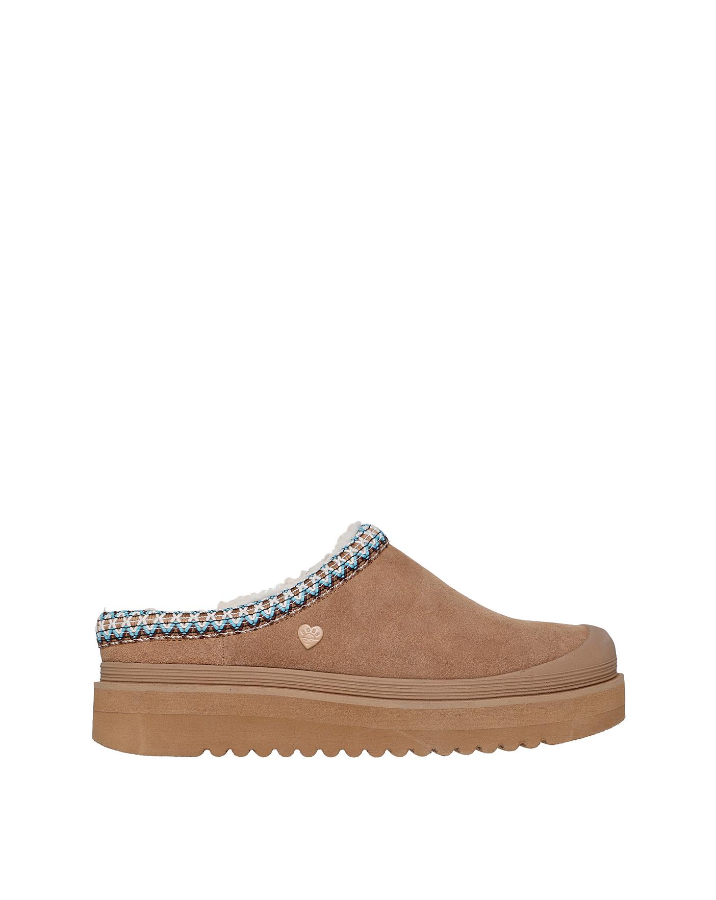Elevate your steps in cozy comfort wearing BOBS from Skechers Keepsakes Hi-Rise - Just In. This clog-style platform slipper features a vegan suede upper with faux-shearling lining, plus a cushioned Skechers Memory Foam footbed.